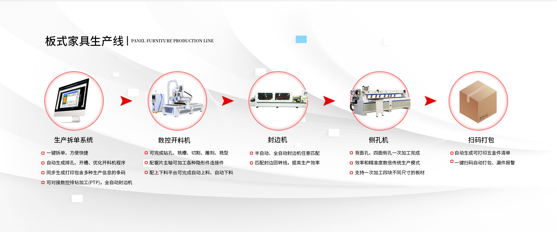 板式家具廠要打造工業4.0的生產線,就要將開料、封邊、鉆孔、分揀、包裝等流程實現自動化、流水化。 >>
